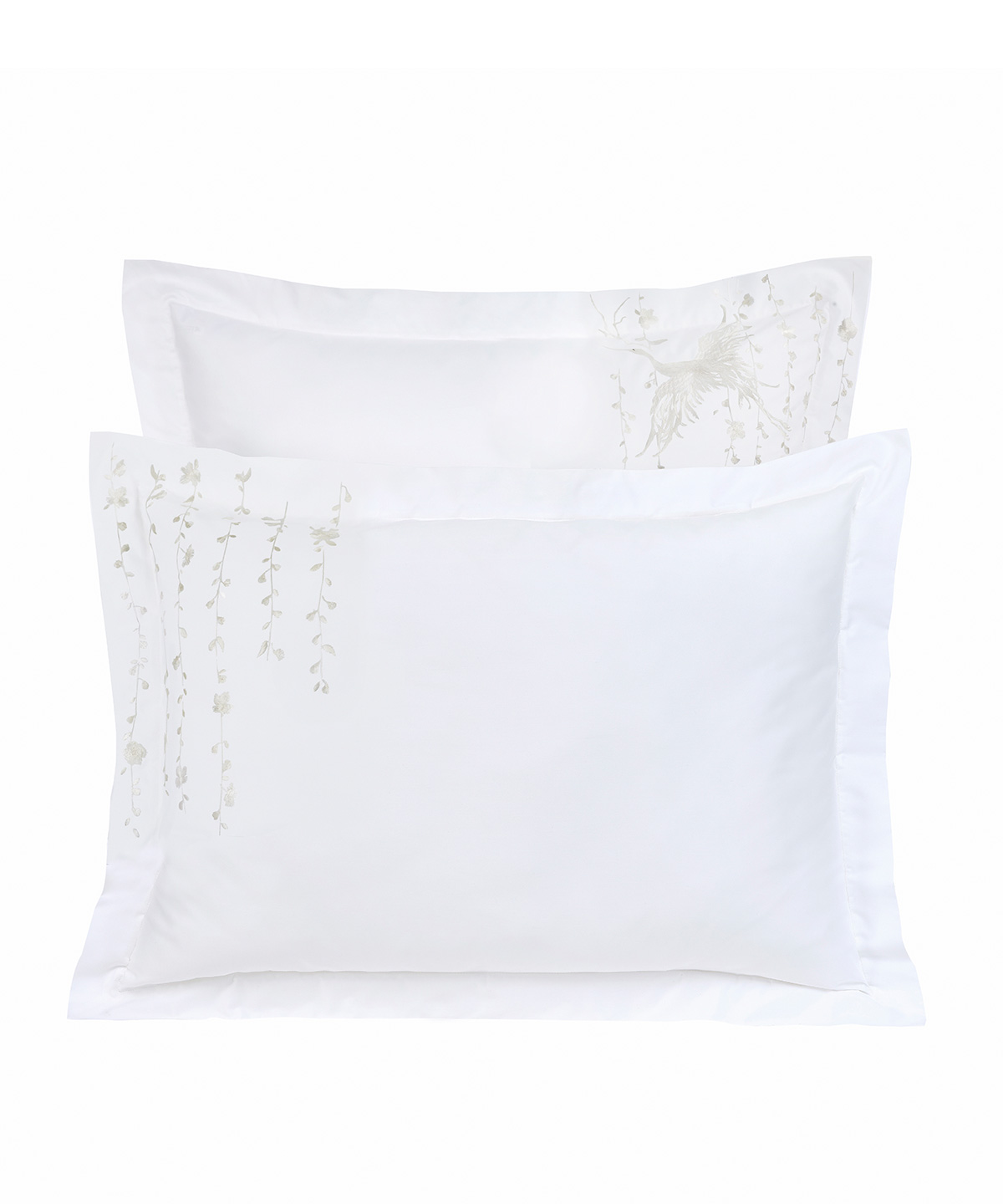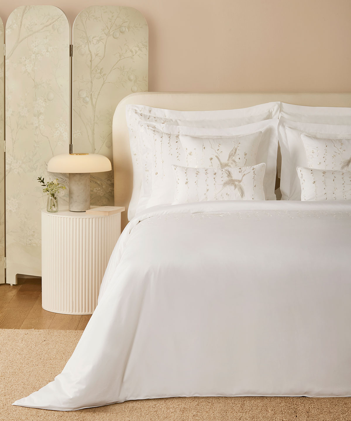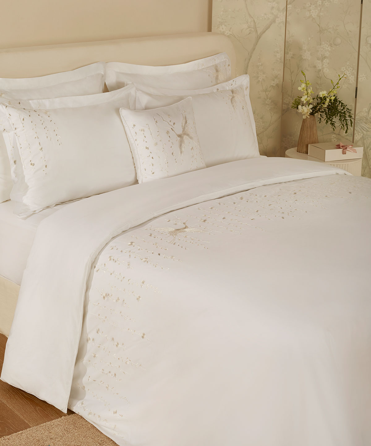 Fairy Tale là sự kết tinh giữa nét sang trọng tao nhã và kỹ nghệ thêu tinh xảo của Catherine Denoual Maison. Trên nền vải trắng tinh khôi, những sợi chỉ trắng khéo léo phác họa họa tiết thanh nhã, trở thành điểm nhấn nổi bật của bộ sưu tập. Bộ chăn ga gối được tô điểm bởi hình thêu chú cò duyên dáng, nhành dây leo rủ bóng cùng những cánh hoa e ấp, tạo nên bức tranh sống động đầy thi vị. Từng đường thêu mềm mại trên chất liệu Cotton Satin 500 sợi siêu dài mang lại vẻ kiêu sa, đằm thắm cho bộ sưu tập, góp phần làm bừng sáng và nâng tầm sự tinh tế, sang trọng cho không gian phòng ngủ của bạn.